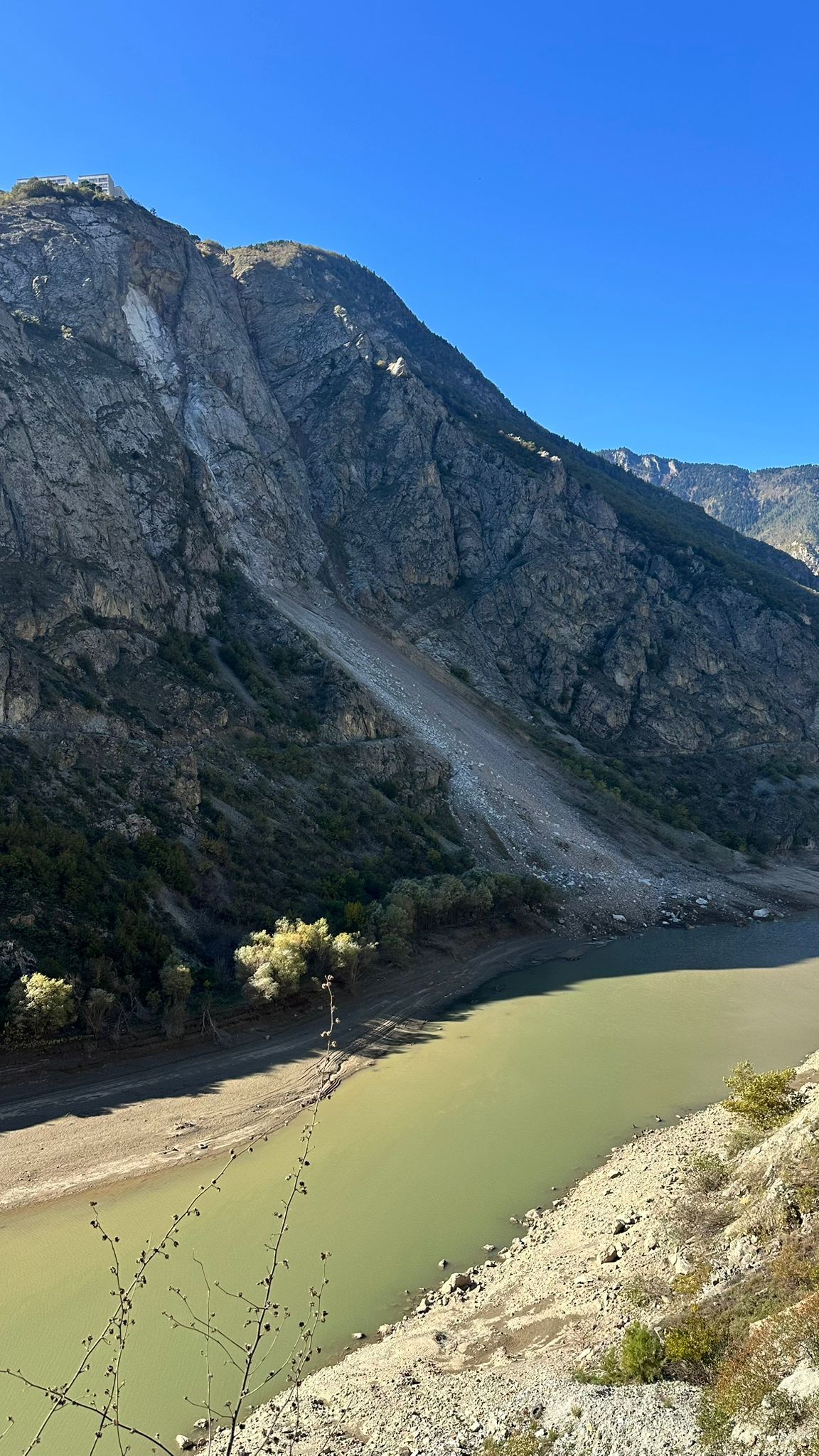 Artvin Yeni Mahallesi’de, Ayhan Şahenk Mesleki ve Teknik Anadolu Lisesi yakınındaki dik yamaçtan kopan kaya parçaları, büyük bir gürültüyle Çoruh Nehri’ne yuvarlandı. Sesi duyan öğrenciler kısa süreli panik yaşarken, ihbar üzerine bölgeye AFAD ve polis ekipleri sevk edildi.