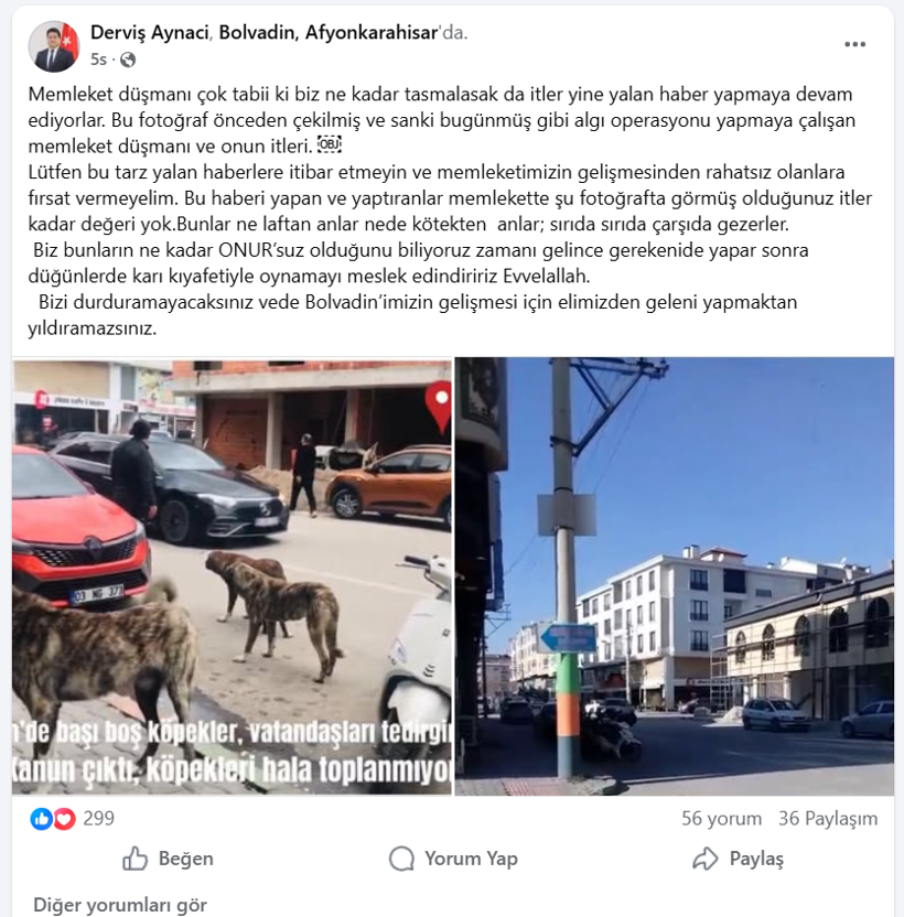 “Memleket düşmanı çok tabii ki biz ne kadar tasmalasak da itler yine yalan haber yapmaya devam ediyorlar. Bu fotoğraf önceden çekilmiş ve sanki bugünmüş gibi algı operasyonu yapmaya çalışan memleket düşmanı ve onun itleri.