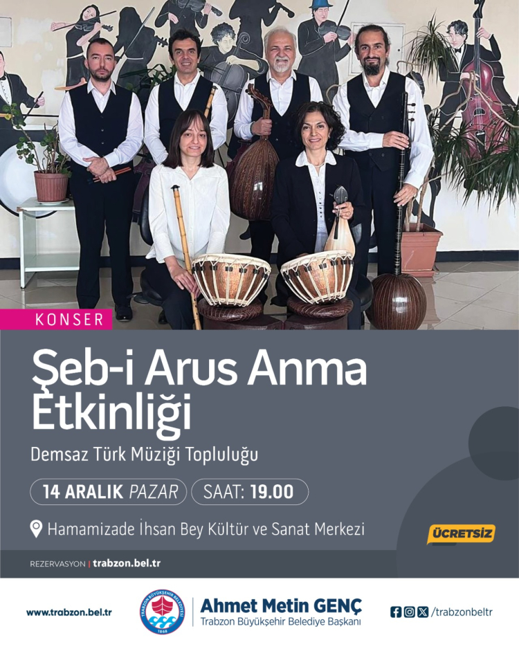 TRABZON (İGFA) – Trabzon Büyükşehir Belediyesi, Aralık ayı boyunca düzenleyeceği kültür ve sanat etkinlikleriyle şehirde geniş kapsamlı bir program sunacak. Büyükşehir Belediyesi Kültür, Sanat ve Sosyal İşler Dairesi Başkanlığı tarafından hazırlanan etkinlikler Hamamizade İhsan Bey Kültür ve Sanat Merkezi’nde gerçekleştirilecek.